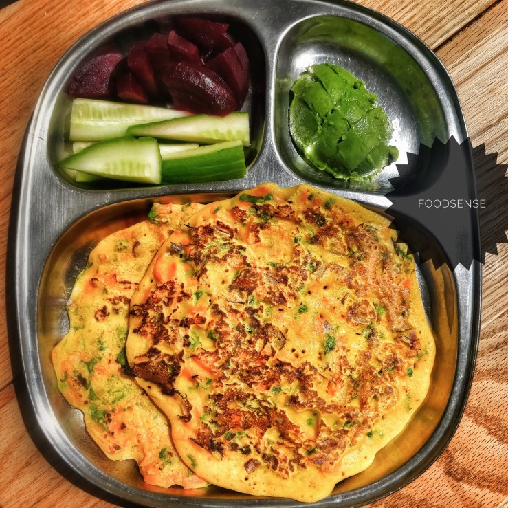 This is a balanced meal that can be made by people with minimal cooking skills. Chilla can be made for breakfast, lunch or dinner. This recipe yields 2 chilla.
